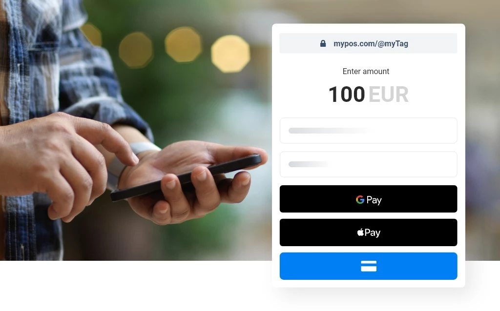 С един клик за клиентите ти се зарежда страница, от която могат да извършат плащането. myPOS Payment Tag е сигурен, бърз, удобен и безплатен.